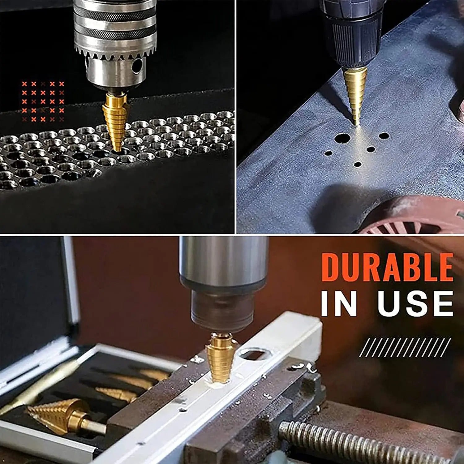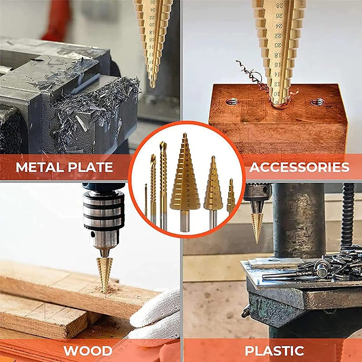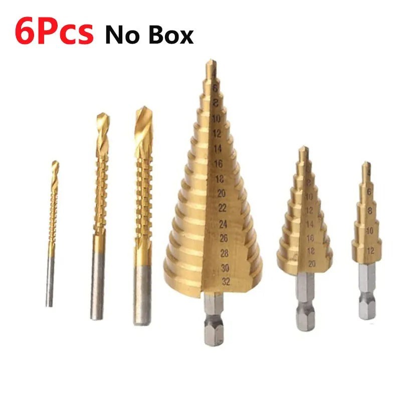 Juego de 6 brocas escalonadas para sierra, fresa de titanio de 4-12, 4-20, 4-32 mm, 3, 6 y 8 mm para carpintería, abridor de agujeros de metal.